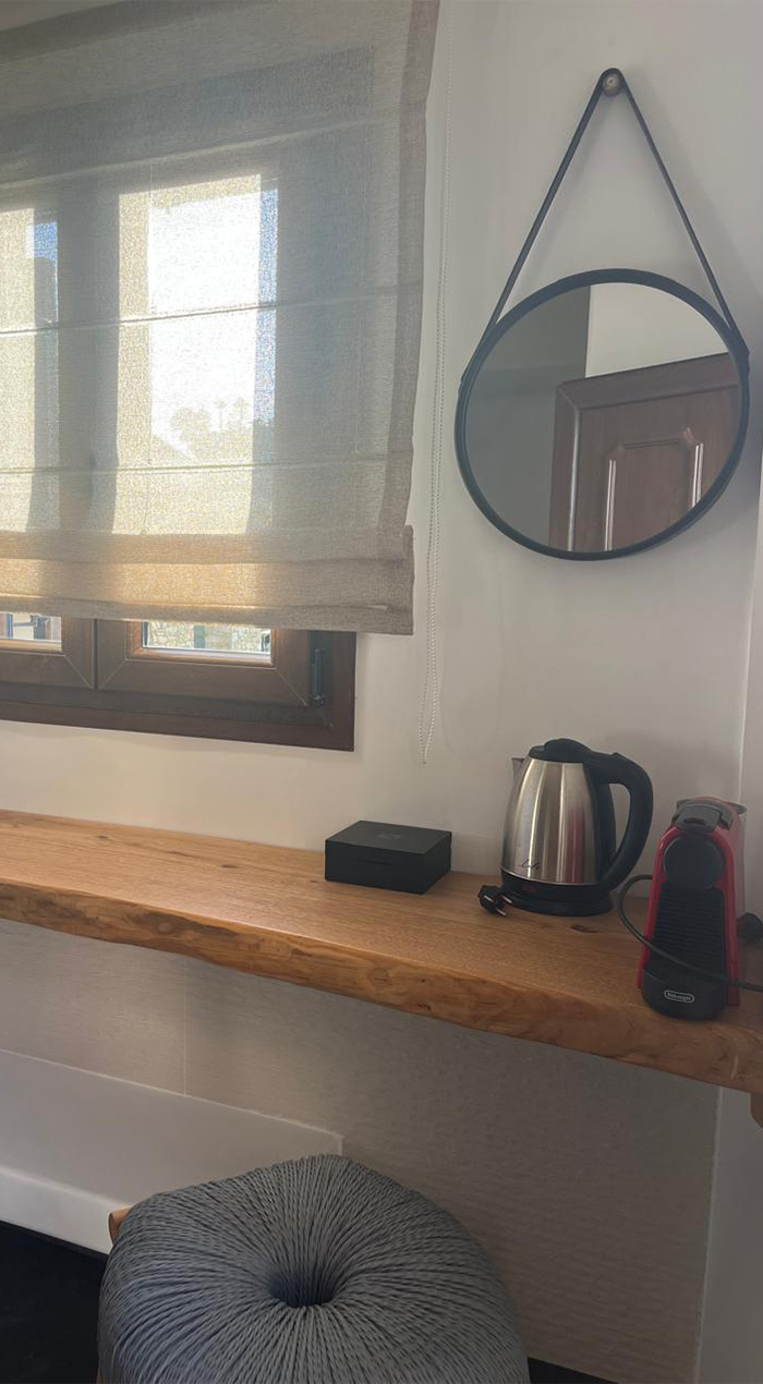 Ένας ενιαίος χώρος 60 μ2 με καθιστικό όπου μπορούν να φιλοξενηθούν 2 επιπλέον άτομα, μπάνιο με ντους, επώνυμα καλλυντικά περιποίησης, πιστολάκι, χρηματοκιβώτιο,κλιματισμός, ψυγείο, τηλεόραση επίπεδης οθόνης 42΄, καλάθι με κρασιά από οινοποιεία της περιοχής, καφετιέρα Nespresso.